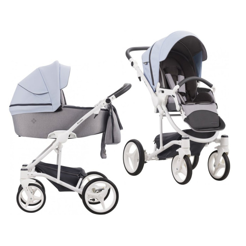 Універсальна коляска 2 в 1 Bebetto Torino блакитна/біла рама