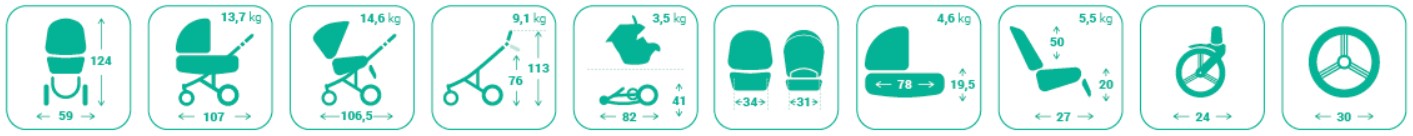 Функціональний прогулянковий блок коляски Torino розроблений максимально зручним. Сидіння налаштовується у різні положення за рахунок регульованих спинки й підніжки. Безпеку забезпечують відкидний бампер, п'ятиточкові ремені й паховий обмежувач.