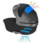 ![]() | Система вентиляції люльки. Коляска Bebetto Torino комплектується люлькою з неймовірно ефективною вентиляцією. Система вентиляції складається з великого вентиляційного вікна у капюшоні та регульованої решітки для мікровентиляції на дні. |