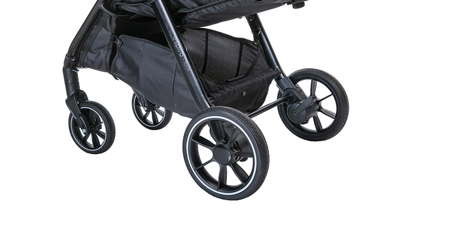 Колекція Espiro Look створена з урахуванням очікувань сучасних батьків, яким потрібна функціональність і безпека, красивий зовнішній вигляд тканин і аксесуарів, а також затишок. Це доповнюється колесами, які не можна пробити та які не потребують накачування.