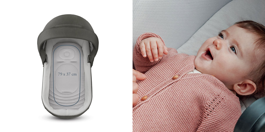 Для правильного фізіологічного розвитку новонародженого важливо якомога довше гарантувати йому лежаче і горизонтальне положення. Завдяки великим внутрішнім розмірам (79 х 37 см) він може комфортно лежати протягом щонайменше 6 місяців, навіть якщо його загорнути в зимовий мішок або одягнути в комбінезон з підкладкою.