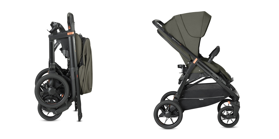 Коляску можна скласти у форму «сендвіч» як сидінням, направленим на себе, так і на дорогу.