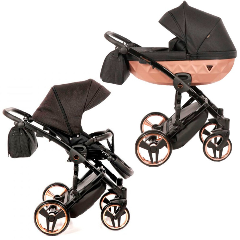 Junama Diamond - ексклюзивний діамант серед величезного розмаїття колясок. Найголовнішою відмінною рисою цієї коляски є короб люльки, виконаний у вигляді огранованого алмаза, який ідеально вписується в загальний дизайн. Кожне забарвлення, виконане з унікальної жаккардової тканини, яка надає нашому діаманту індивідуальний і вишуканий стиль. У цій колясці об'єднані всі необхідні вимоги: висока якість продукту, яка створює комфорт і безпеку для малюка, а також функціональність і неповторний дизайн для домашнього використання.