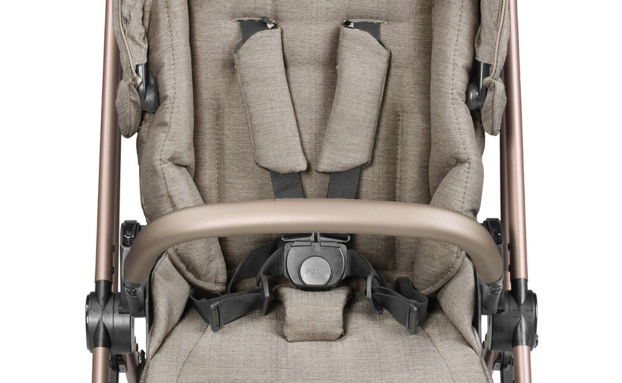 Комфорт і функціональність гарантують просторе сидіння, 5-точкові ремені безпеки та передня дужка з екошкіри, яка легко відкривається та закривається.