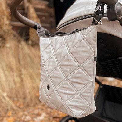 Велика практична та сучасна сумка, що кріпиться до ручки коляски. Можна носити як на плечі, так і через плече за допомогою ремінця.