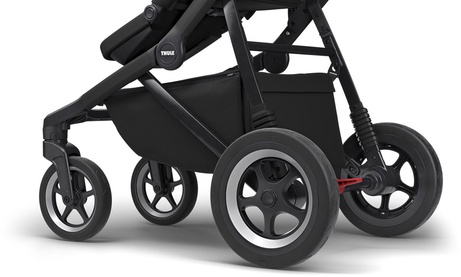 11-дюймові задні шини на колесах, не пробиваються, виготовлені зі спіненого матеріалу, забезпечують плавний рух по нерівній місцевості, а завдяки ободам, що відбивають світло, їх добре видно; їх можна також зняти, щоб компактно скласти коляску.