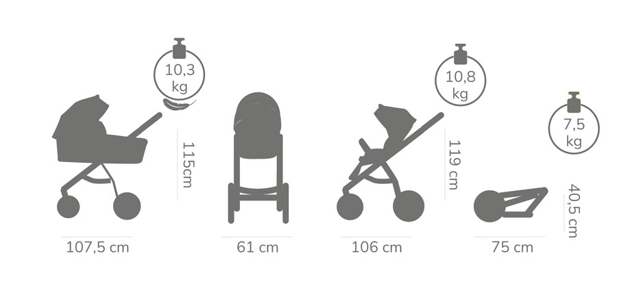 Mio Plus Thermo має найбільш ергономічну складну раму - одне натискання повзунка миттєво складає корпус, і він складається в компактну упаковку розміром 77 x 61 x 44 см. Але найкраще в новому шасі Tutis Mio Plus Thermo те, що раму можна скласти разом із прогулянковим блоком з обох боків - як обличчям до батьків, так і обличчям вперед. Крім того, Mio Plus Thermo унікальна своєю подвійною амортизацією - регульована і дуже м'яка амортизація забезпечує абсолютно плавну прогулянку, маневреність і збільшений термін служби коляски.