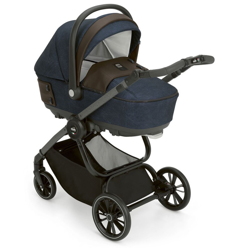 Схвалена для використання в автомобілі (0-10 кг.), дуже простора, оснащена системою швидкого встановлення і зняття на/з шасі, ручка захищає від перекидання люльки в машині, повністю утеплена люлька, регульована в 3 положеннях спинка, вкладиш з бавовни, сучасна накидка на ніжки з вишуканими вставками з м'якої штучної шкіри і нашивками, в капюшоні вбудована велика москітна сітка, він також забезпечений сонцезахисним козирком, вентильоване дно, велика сучасна сумка з пеленальним матрасиком в комплекті.