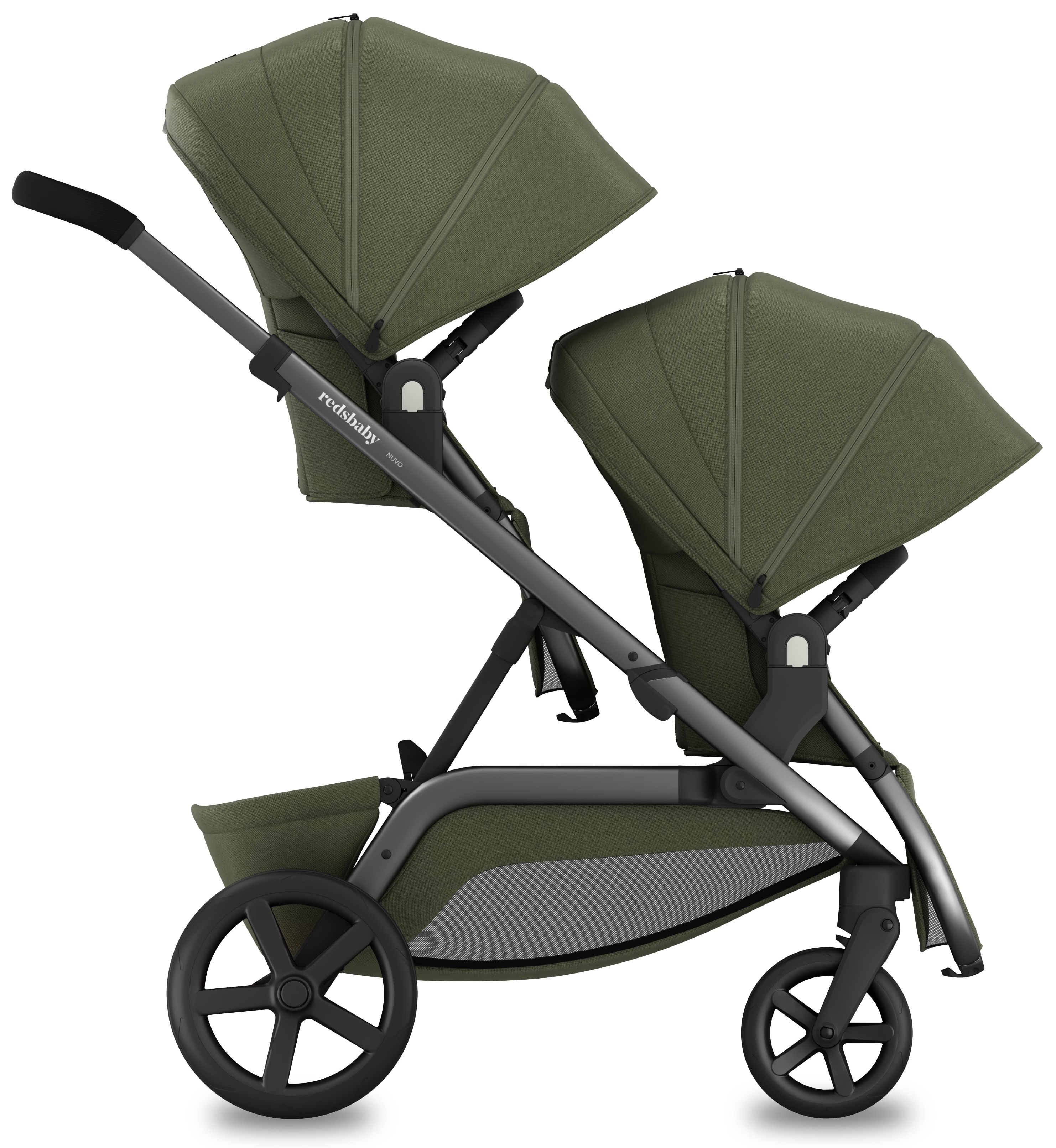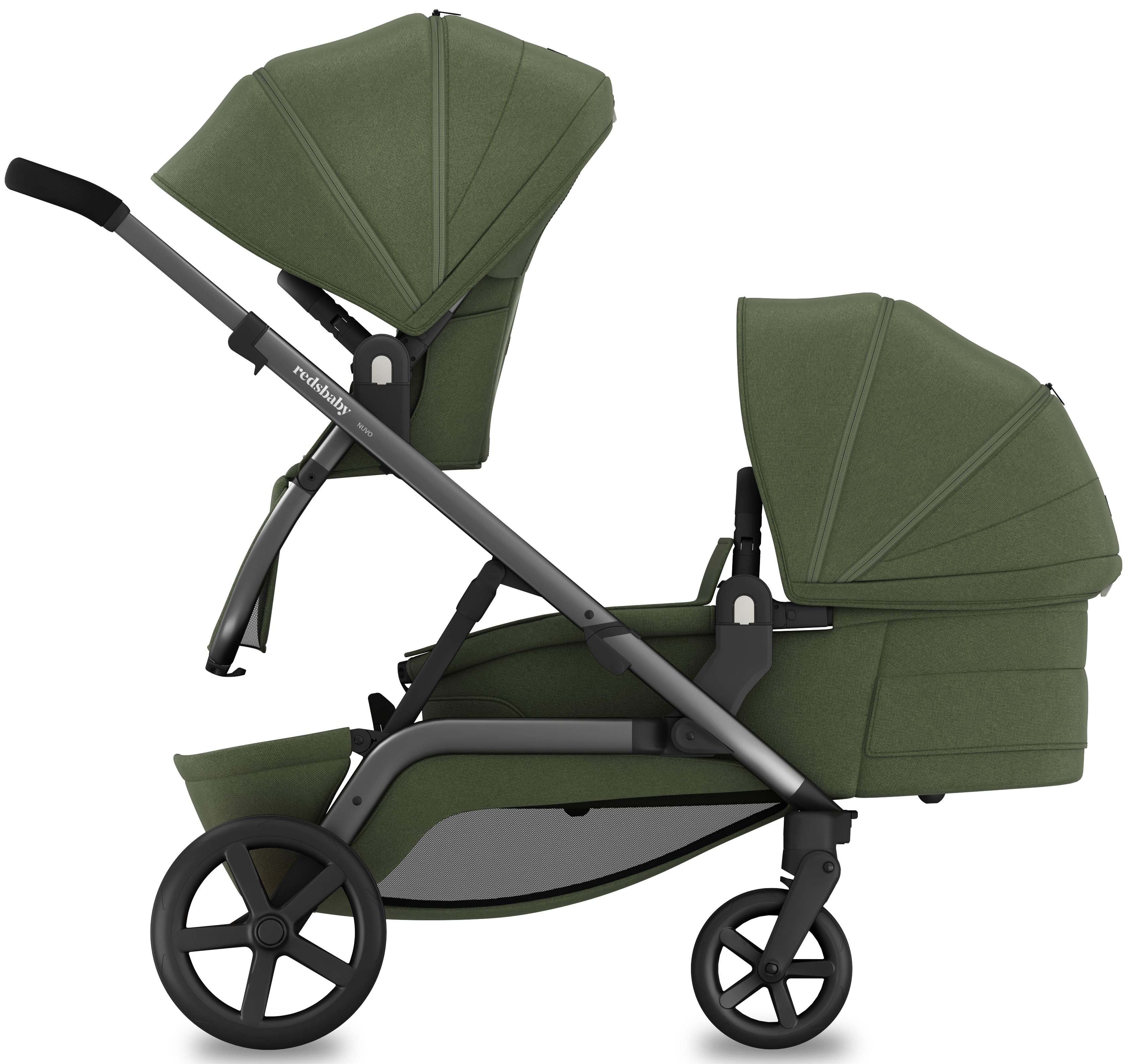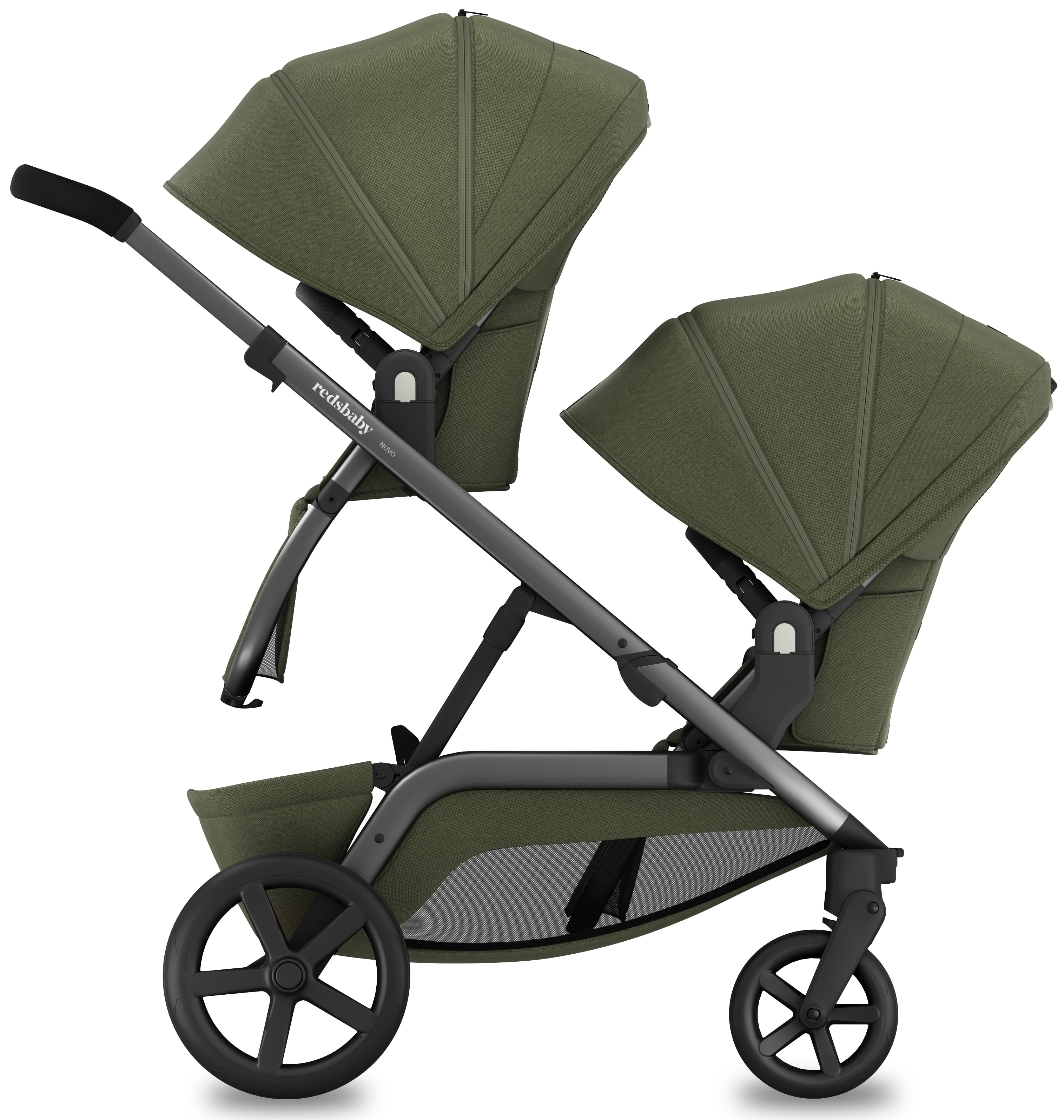 1. Концепція, що змінюється разом із вами: Redsbaby Nuvo — це десятки варіантів використання: як звичайна коляска, для двійнят, для різновікових дітей або навіть для трьох. При цьому ширина шасі всього 60 см, що дозволяє легко проходити у будь-які двері.