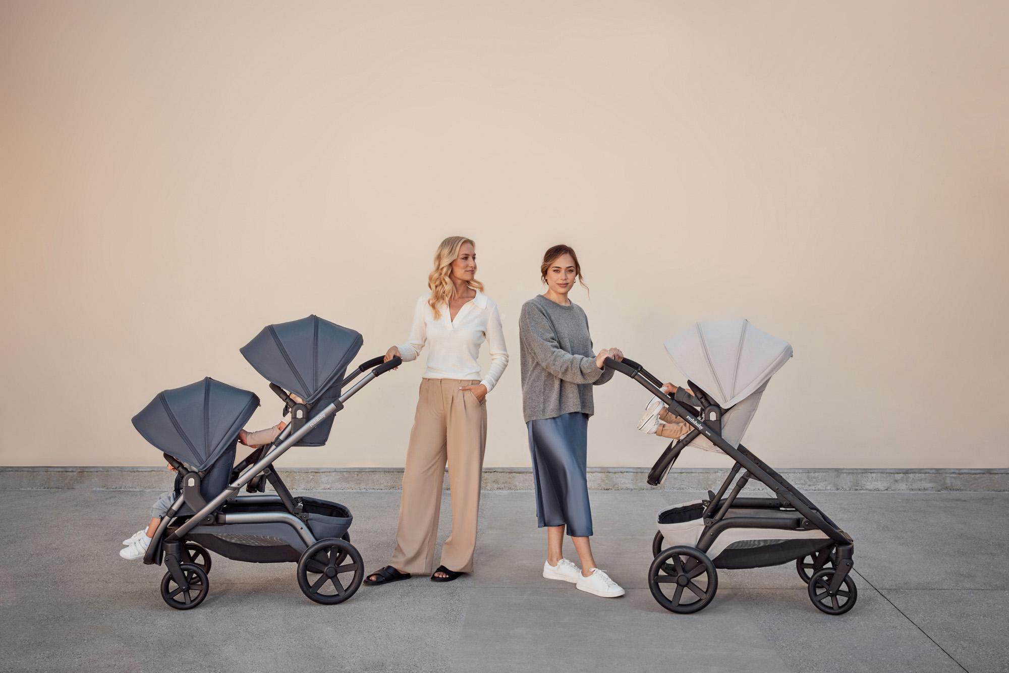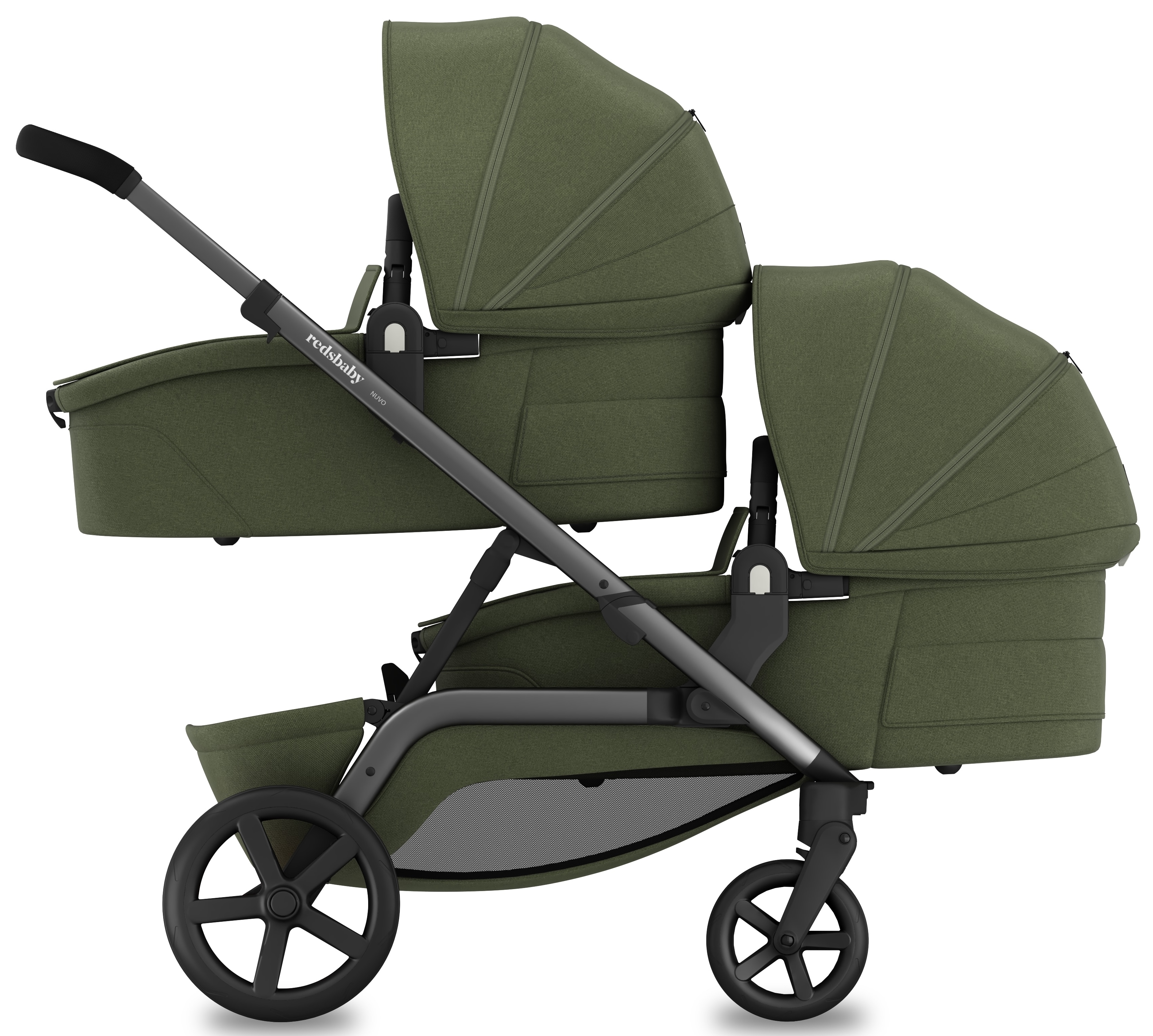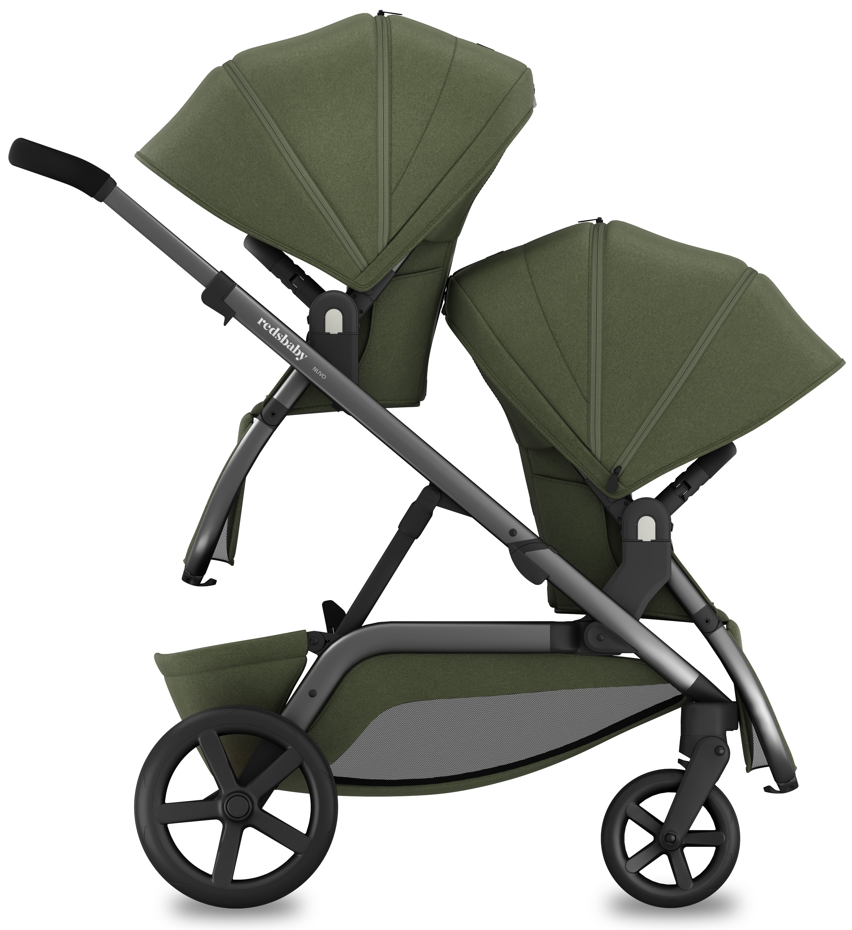 1. Концепція, що змінюється разом із вами: Redsbaby Nuvo — це десятки варіантів використання: як звичайна коляска, для двійнят, для різновікових дітей або навіть для трьох. При цьому ширина шасі всього 60 см, що дозволяє легко проходити у будь-які двері.