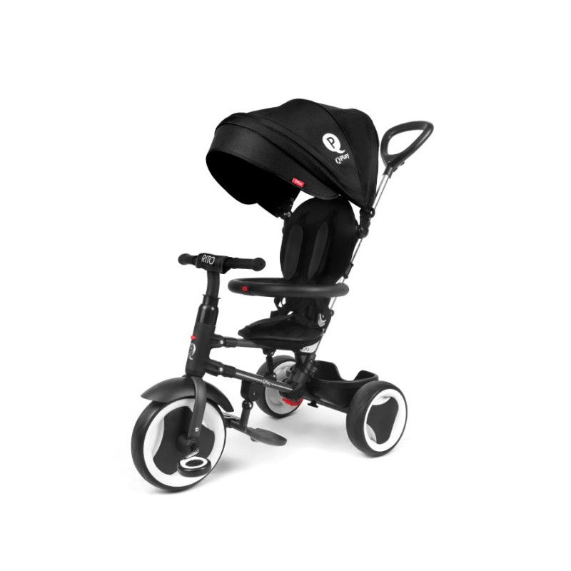 Триколісний велосипед QPlay Rito можна штовхати та контролювати дорослими доти, доки дитина не навчиться їздити. У спекотний сонячний день капюшон захищає дитину, і при необхідності її можна легко демонтувати.