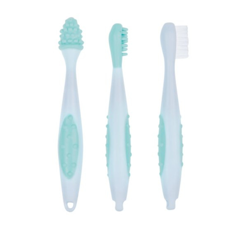 Цей набір включає три щіточки для кожного етапу розвитку, щоб забезпечити максимальний комфорт і ефективність при кожному чищенні. Щіточки спеціально розроблені для стимуляції ясен, ніжного масажу і подальшого розвитку правильних звичок чистоти зубів.